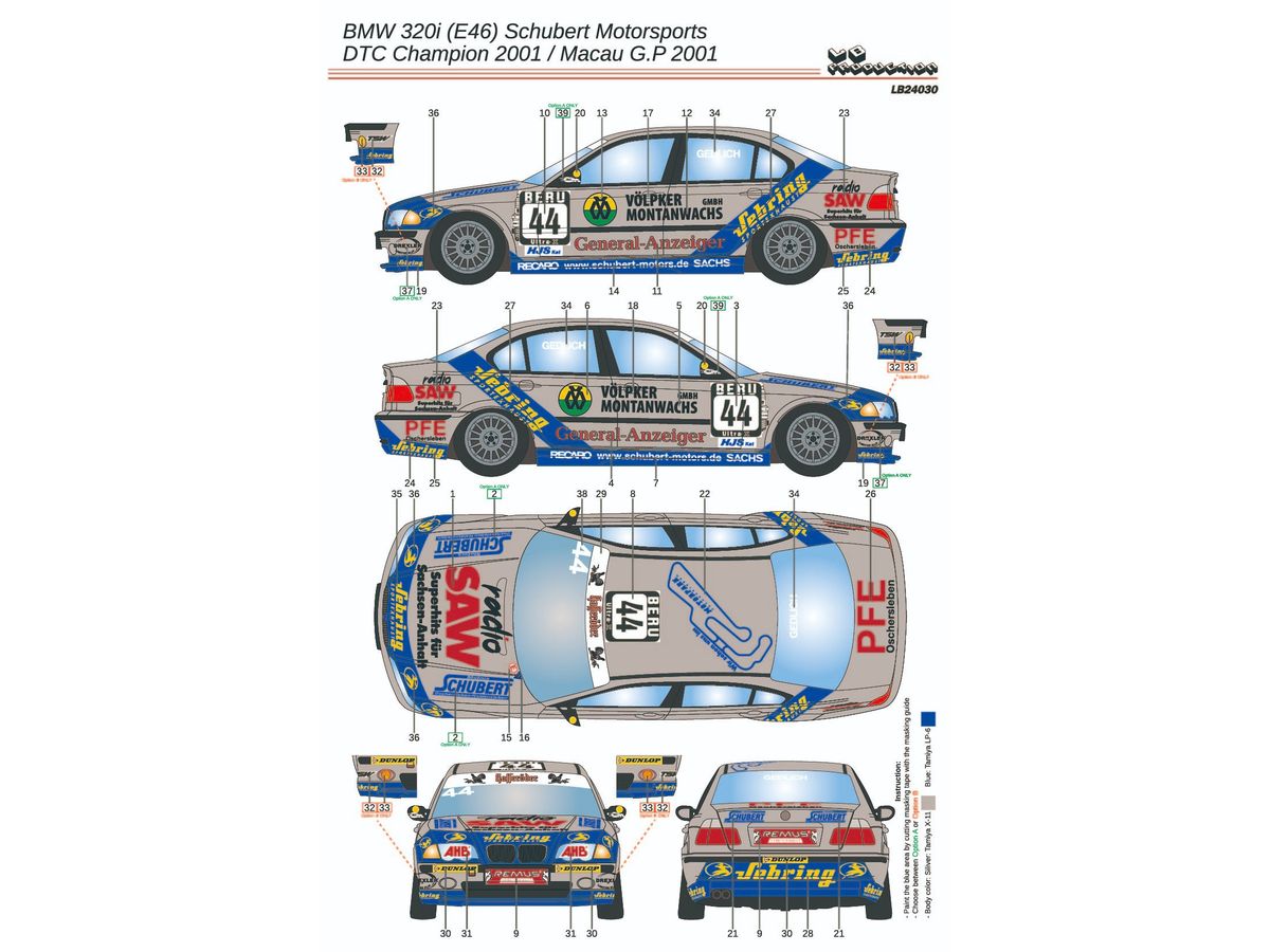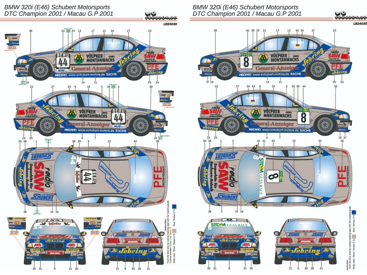 1/24 BMW320i E46 2001 DTCCウイナー 2001 マカオ ギアレース/DTC ドイツ ツーリングカーカップ チーム・シューベルト #8 & #44 デカール付属