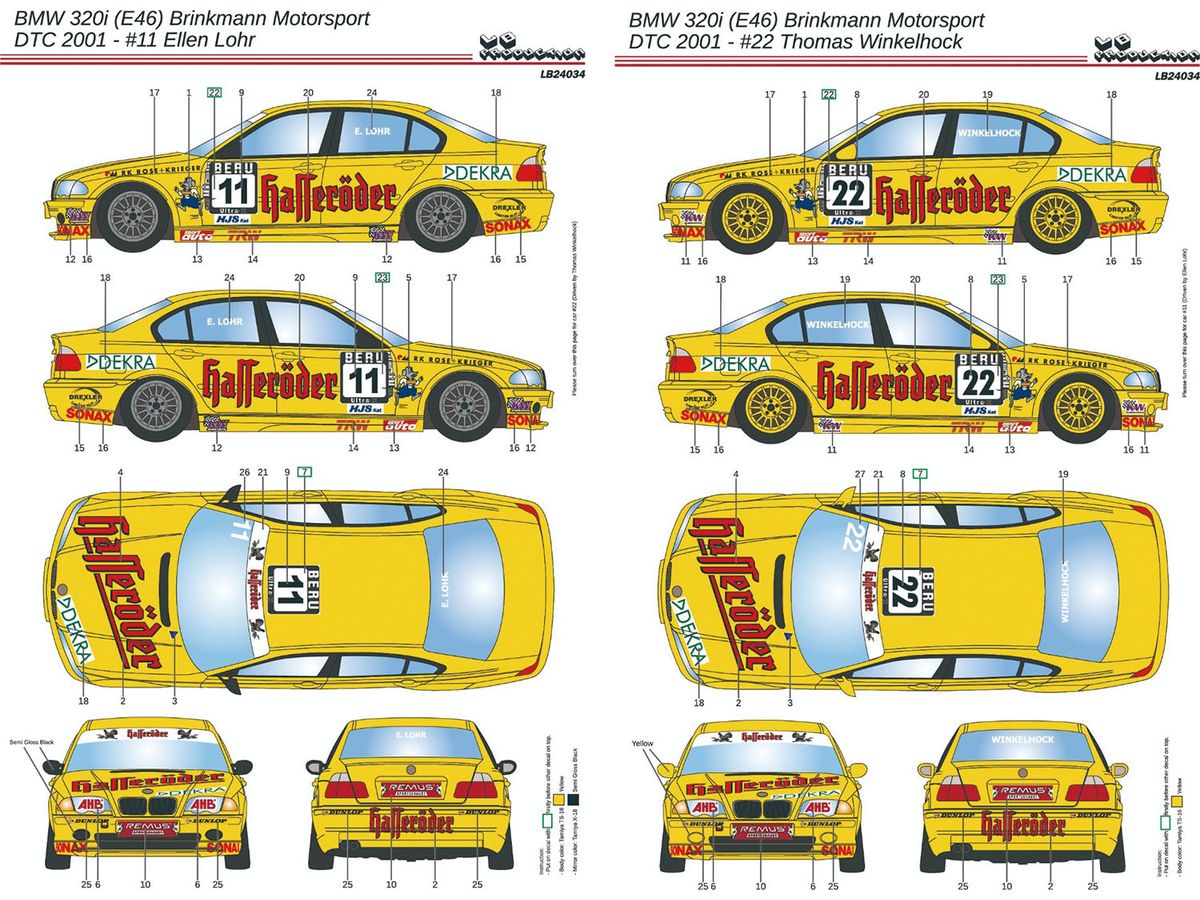 1/24 BMW320i E46 2001 DTCドイツ ツーリングカーカップ ブリンクマン・モータースポーツ #11 & #22 デカール付属