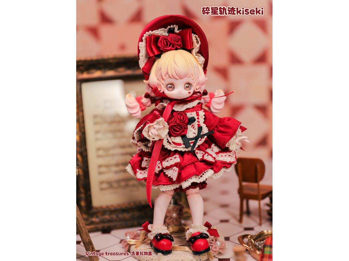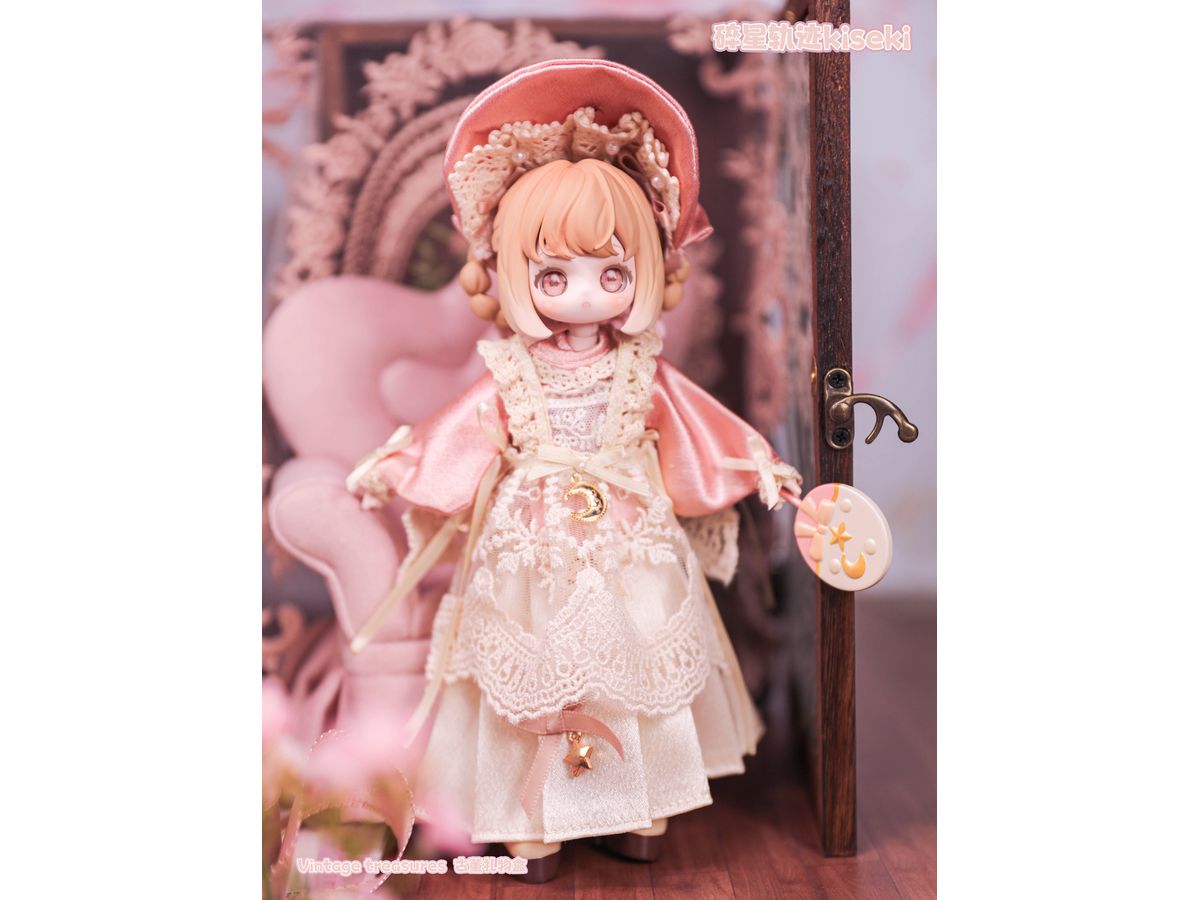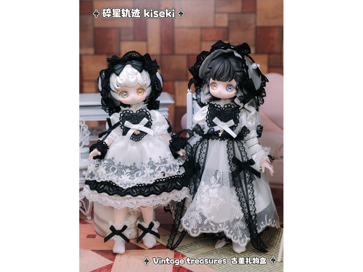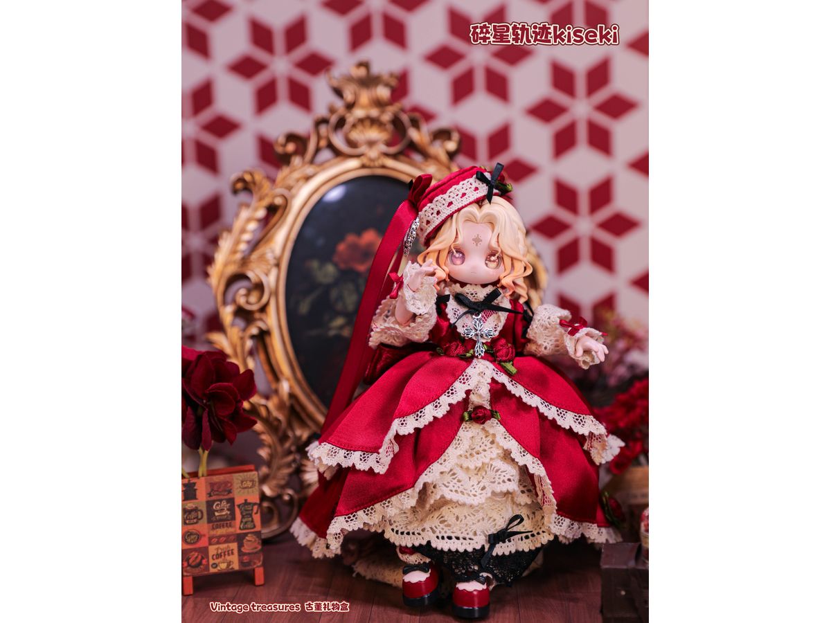 レースやベルベットの質感、ドールのスカートやアクセサリーの刺繍は、時の流れが残した痕跡です。