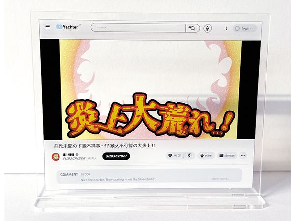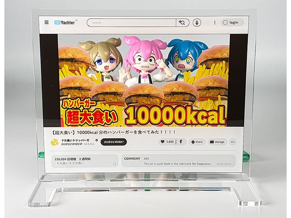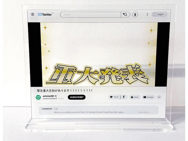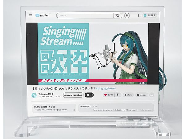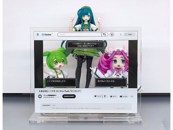 お手持ちの1/12スケールサイズ等のフィギュアやプラキット、ミニフィギュア、ぬいぐるみと一緒に飾るだけで、たちまち「あの!?動画配信中」のシチュエーションが完成するポップでユニークなアクリルスタンドです。