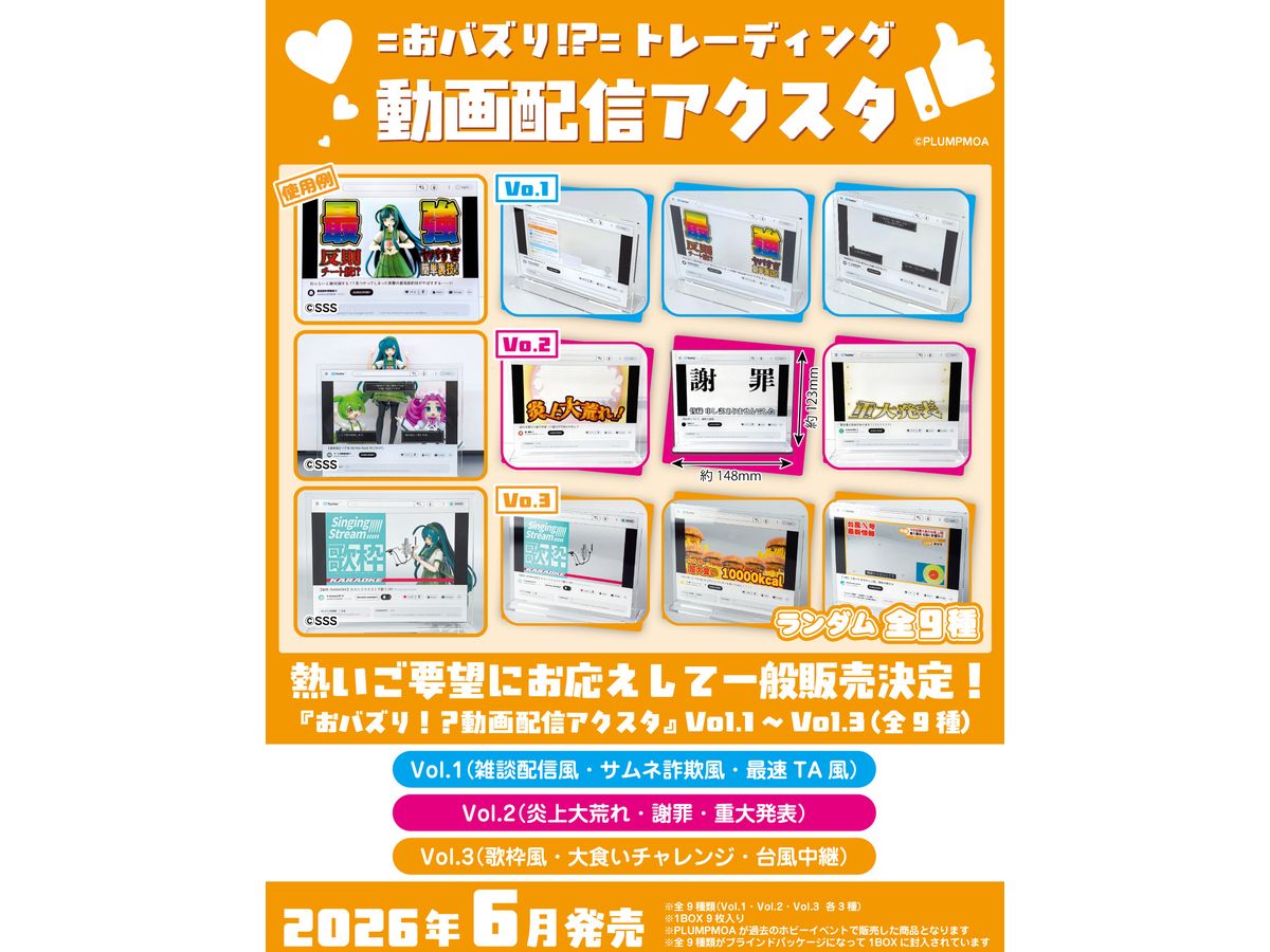 PLUMのイベントブースで大好評を博した限定アイテム『おバズり!?動画配信アクスタ』Vol.1~Vol.3(全9種)が、熱いご要望にお応えして一般販売決定!