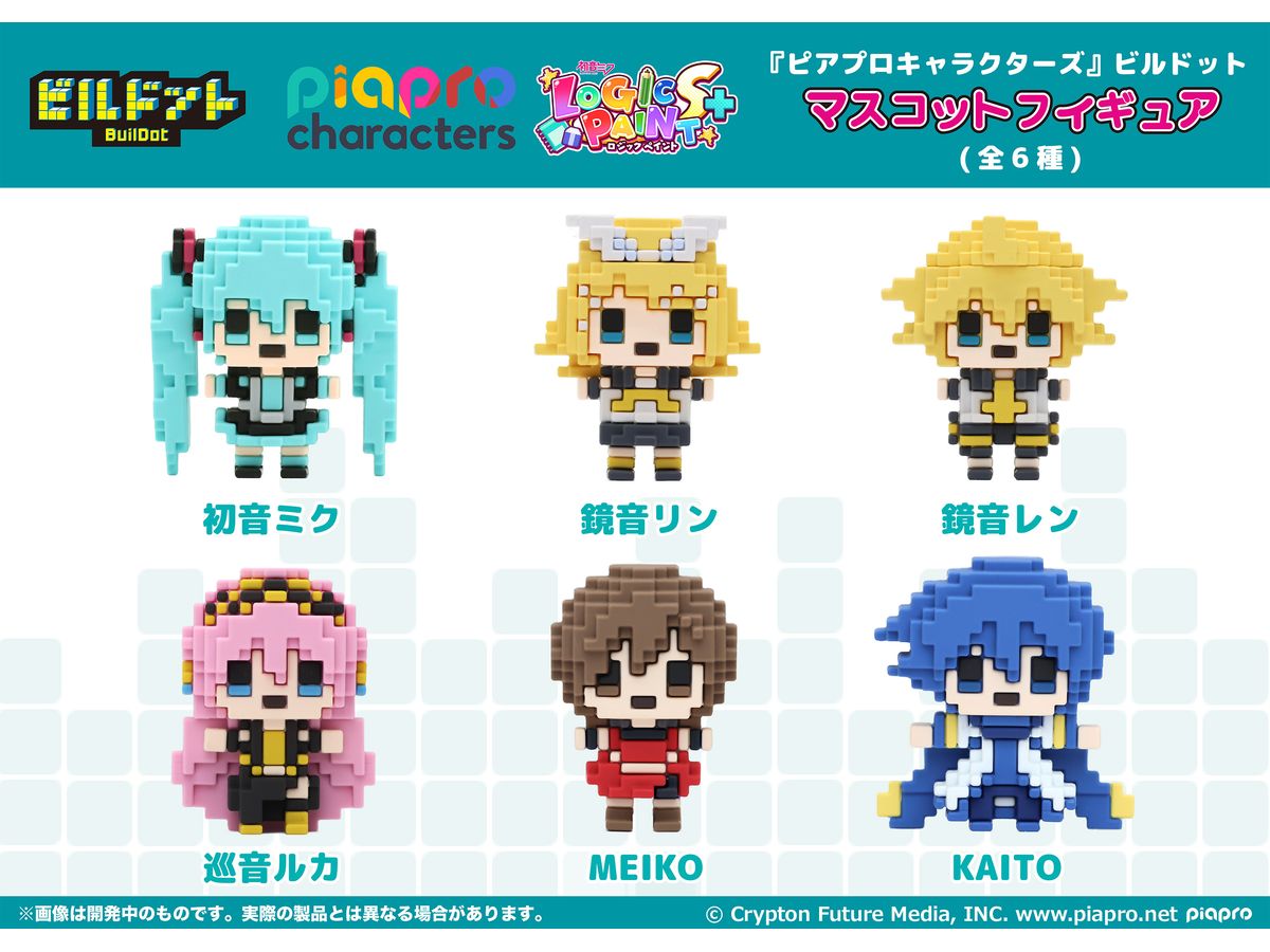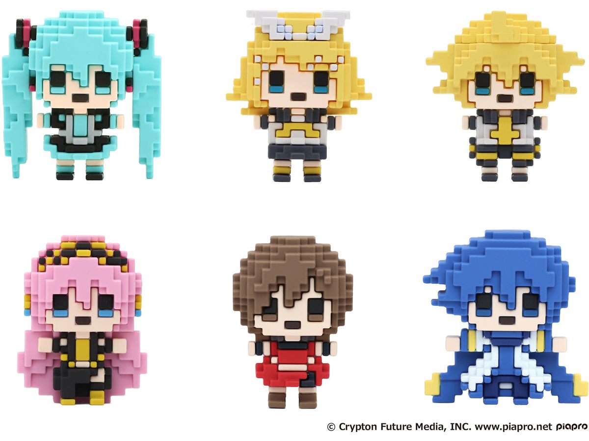 「初音ミク ロジックペイント」より、バーチャルシンガーの「初音ミク」「鏡音リン」「鏡音レン」「巡音ルカ」「MEIKO」「KAITO」がビルドットマスコットフィギュアで登場です。
