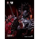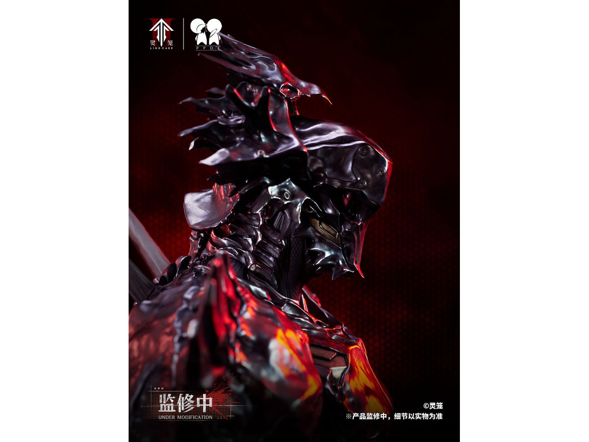 メタリックな装甲表現と、台座部分から燃え立つようなクリアエフェクトの造形が相まって、作品世界が持つ荘厳さと狂気を見事に再現しています。