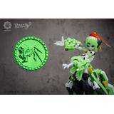 清新なグリーンを基調とした装甲が特徴的で、普段は農業の頼れるお手伝いさん(?)として活躍しますが、 戦闘態勢に入れば、カマキリの鋭い刃を彷彿とさせる武器と、高い機動性で敵を圧倒します。
