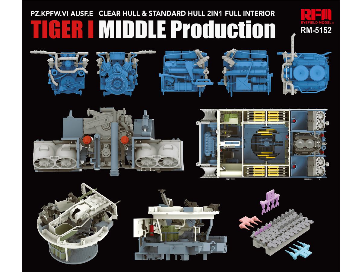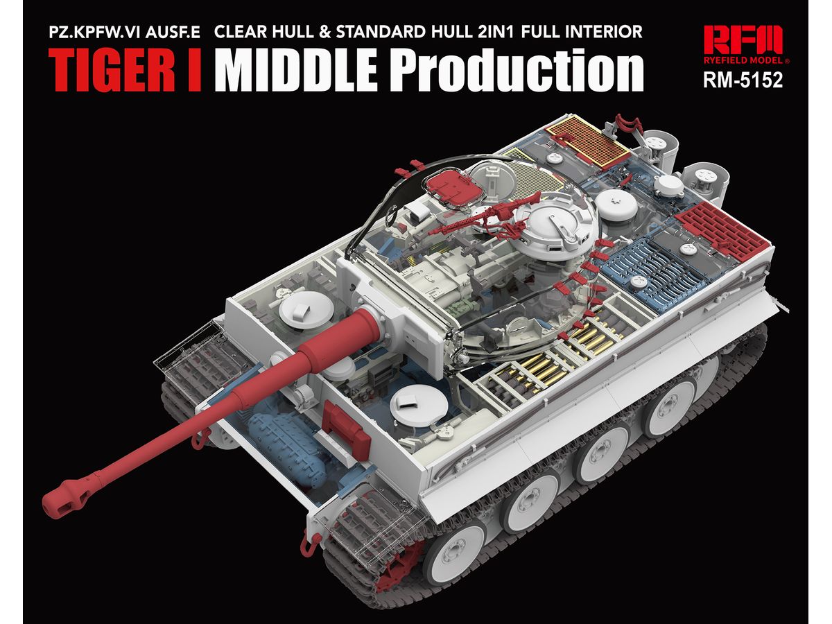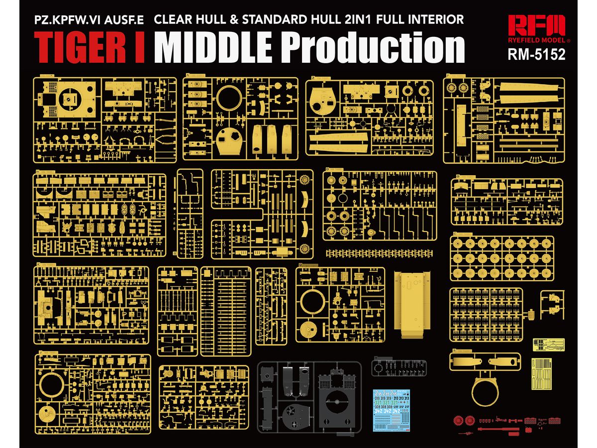 1/35 タイガーI 重戦車 中期型 w/フルインテリア (クリア & 通常車体パーツ、連結組立可動式履帯)