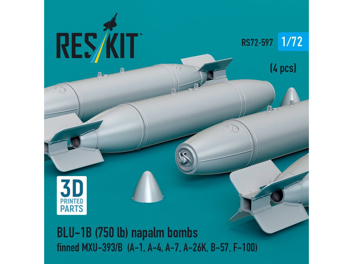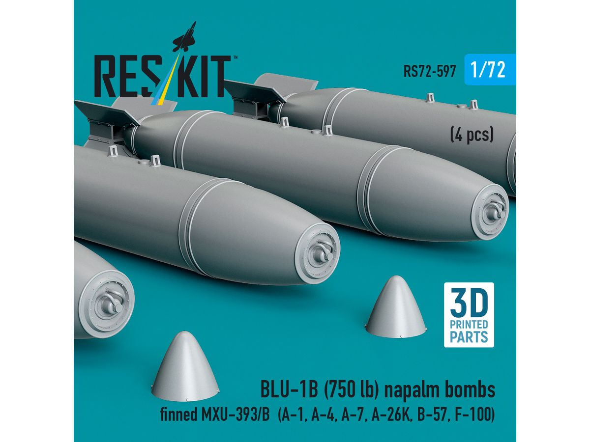 1/72 BLU-1B 750ポンド ナパーム弾 w/MXU-393/B フィン (4個入)