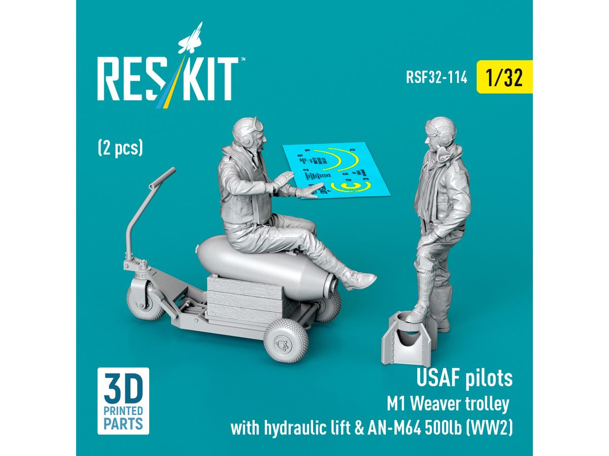 1/32 WWII 米陸軍空軍パイロット (2体) w/M1 爆弾運搬車 & AN-M64爆弾