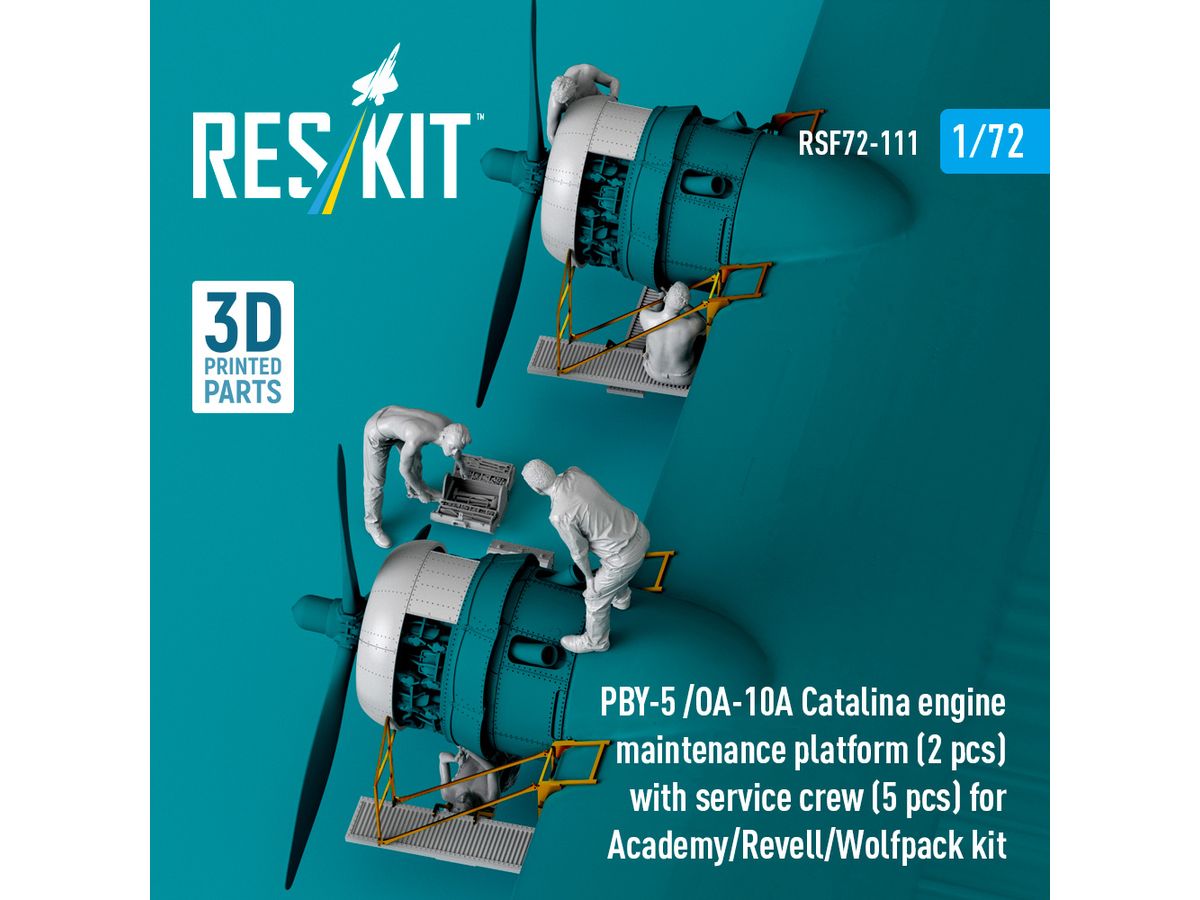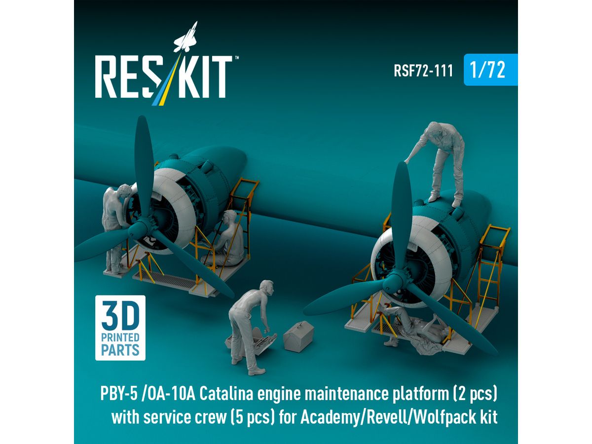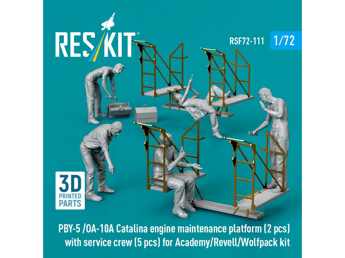 1/72 PBY-5/OA-10A カタリナ エンジン点検 作業台 (2台)w/整備兵 (5体) (アカデミー用)