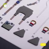 使い方はデカールと同じようにぬるま湯に浸して印刷されたパーツを台紙から剥がしてから、貼る場所のモールドを削り取るなどして平らにしたキットのパーツに、PVAボンド(木工用ボンド)やエポキシボンド等で接着します。