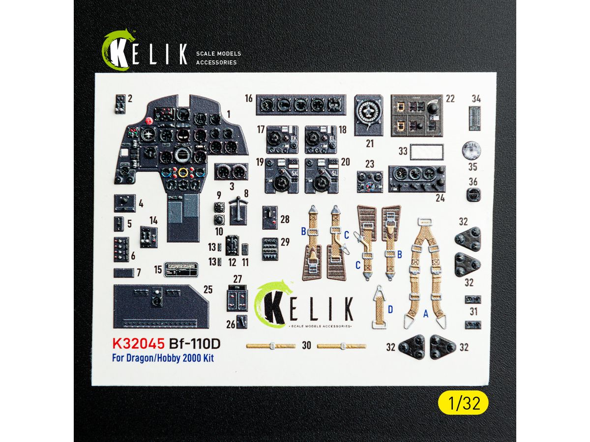 1/32 Bf110D 内装3Dデカール (ドラゴン用)