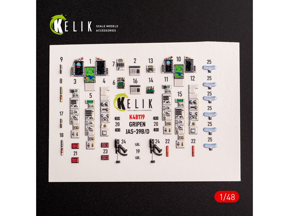 1/48 JAS-39B/D グリペン 内装3Dデカール (キティホーク用)