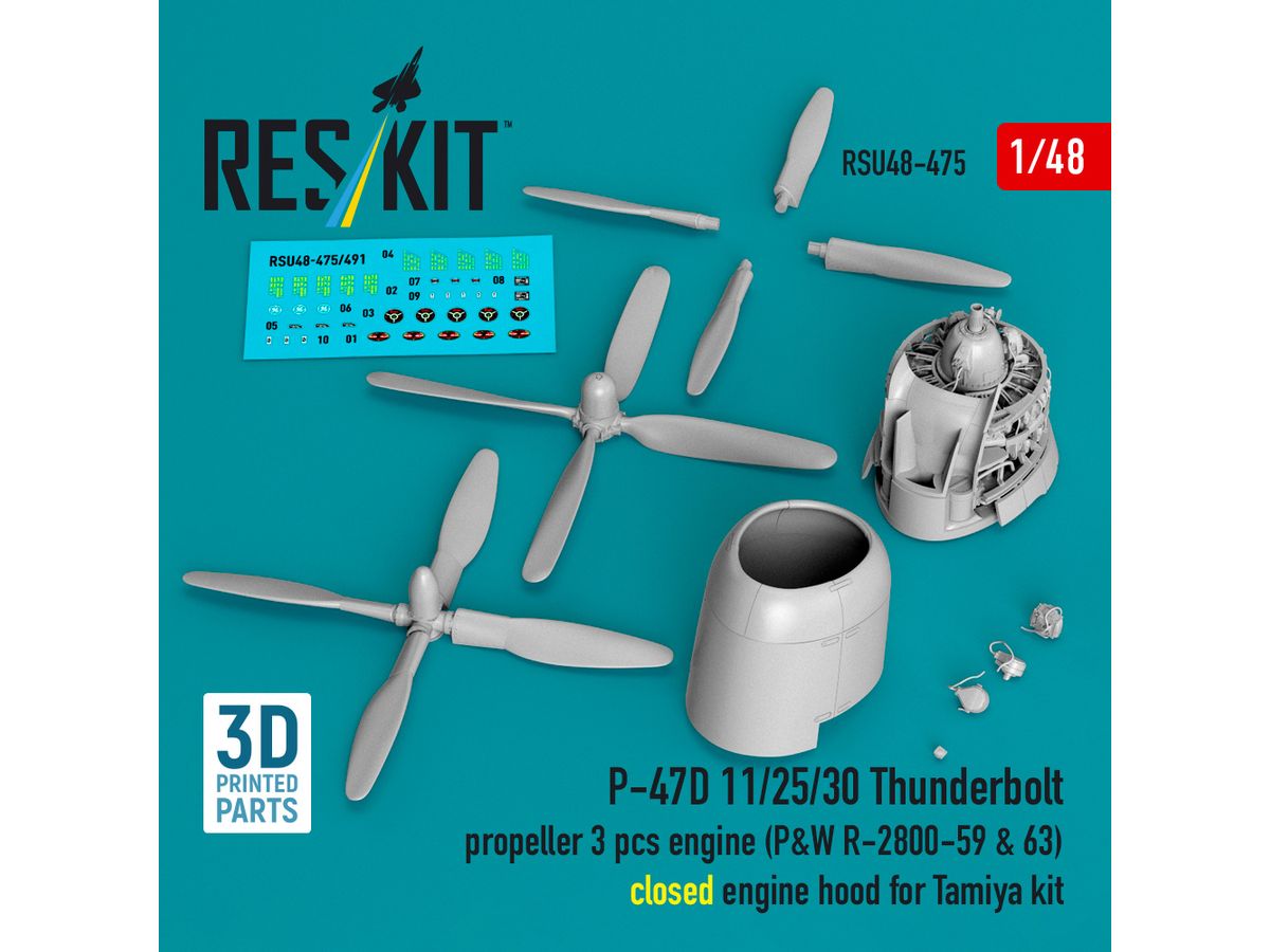 1/48 P-47D-11/25/30 エンジン、カウリング(閉状態)、プロペラ (3種 x 各1) セット(タミヤ用)