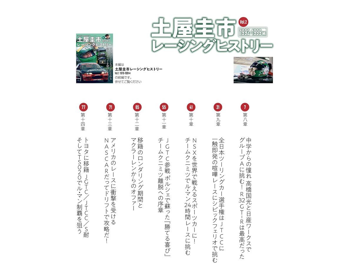 ドリキン 土屋圭市が当時の写真を前に自身のレースを振り返る『レーシングヒストリー』のVol.2です。1992-1999編で2023年夏刊行のVol.1(1978-1991編)の続編となります。