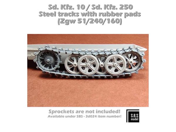 1/35 Sd.Kfz.10/Sd.Kfz.250 スチール履帯 w/ゴム製パッド (Zgw51/240/160)