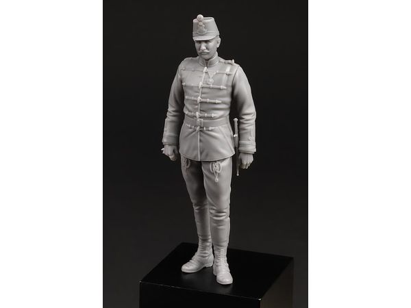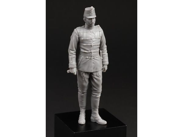キットは当時の人物の写真から、制服のディテールを精密に再現しています:上着はハンガリー連隊特有のM1881「スケルトン・アッティラ」、紐飾り付きの「ハンガリアン・ズボン」、帽子にM1891紋章が付けられ、ベルトにM1892バックルが付いています。