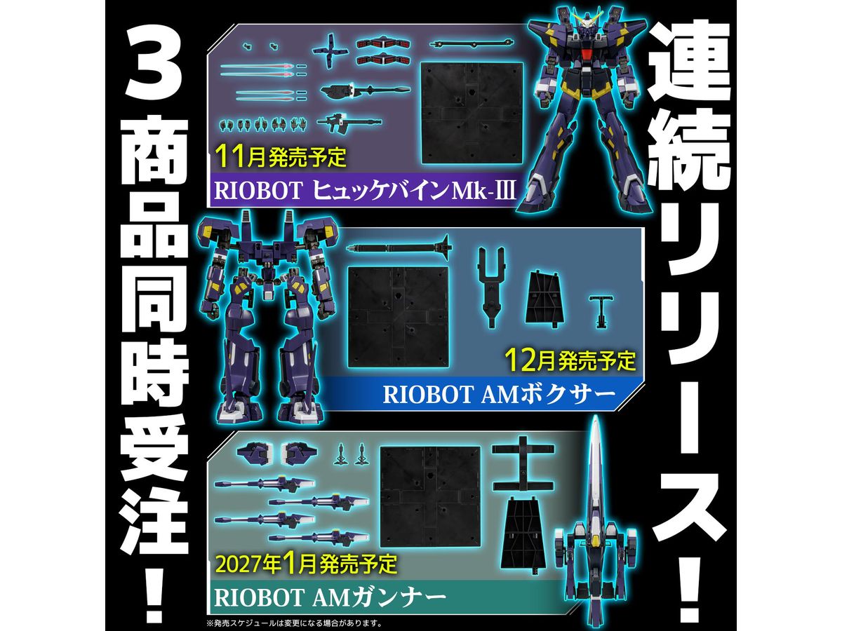 ※「RIOBOT ヒュッケバインMk-Ⅲ」および、「RIOBOT AMボクサー」、「RIOBOT AMガンナー」の3種は、それぞれ別売の商品となります。セット販売商品ではございません。