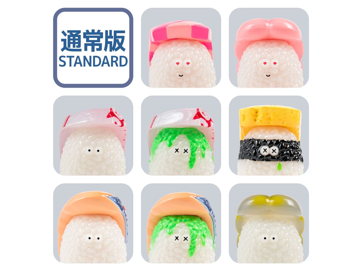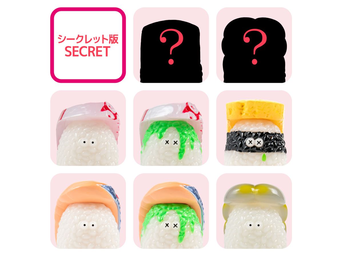 ラブリーまぐろ、ラブリーえび、ぶらっくたいがー、たまご 涙わさび付き、 たこ、たこわさ、しめさば、しめさば わさび付き、シークレット2種
