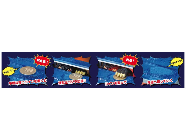 ジオラマの海中よりゴジラが現れ、コインを襲う!