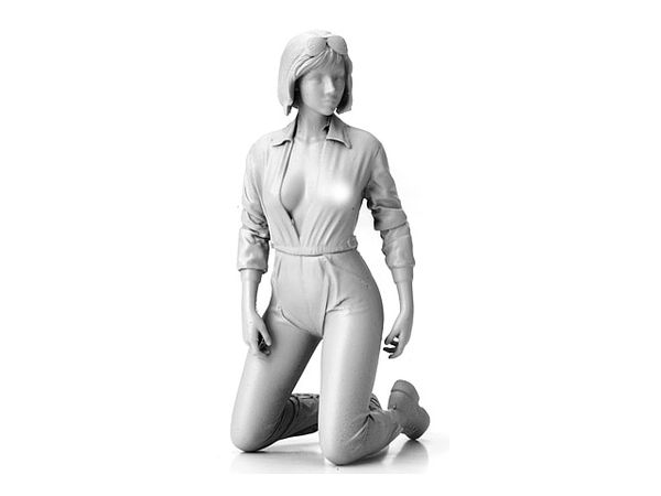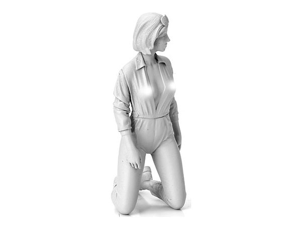 整備用のつなぎ服を着て何か部品を交換する作業途中のダイナを1/20スケールで再現したレジンキットです。