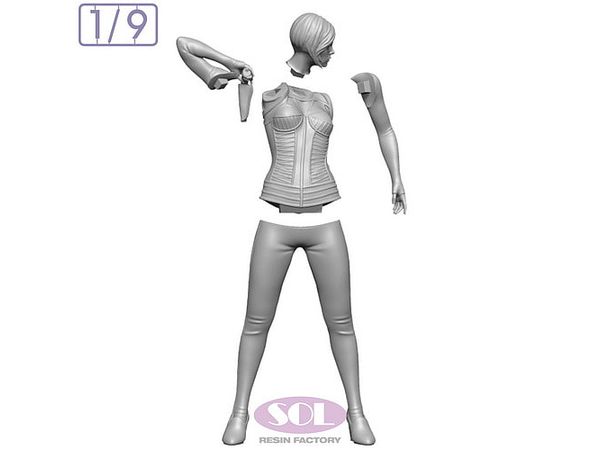 ボディスーツに身を固めて仁王立ちし、右手を背中に回して背中のホルスターの銃を取ろうとするポーズでモデル化しました。