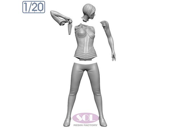 ボディスーツに身を固めて仁王立ちし、右手を背中に回して背中のホルスターの銃を取ろうとするポーズでモデル化しました。