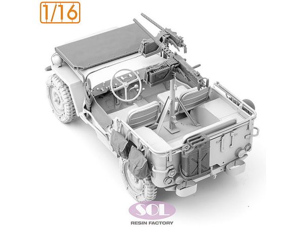 M1919 7.62mm機関銃、M2 12.7mm機関銃およびマウント、M1ガーランド小銃と格納ラックなどの小火器類、起倒式のフロント牽引マウント、サイドバッグ、車体側面カバー、カバー付フロントウインドウ、ジェリカン、ヘルメットなどの追加装備類を豊富にセットします。