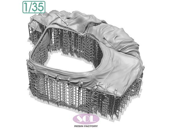 第二次大戦アメリカ軍で兵員輸送などに使われたM3A1ハーフトラックのオープントップの兵員室に取り付けられたキャンバストップを再現するアクセサリーパーツです。