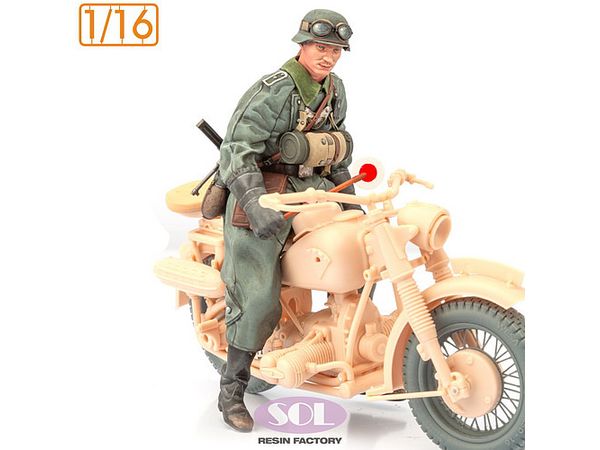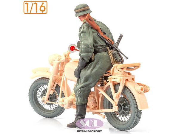 1/16 WWII ドイツ R75軍用オートバイに乗るオートバイ兵(フリーダムモデルキット用)