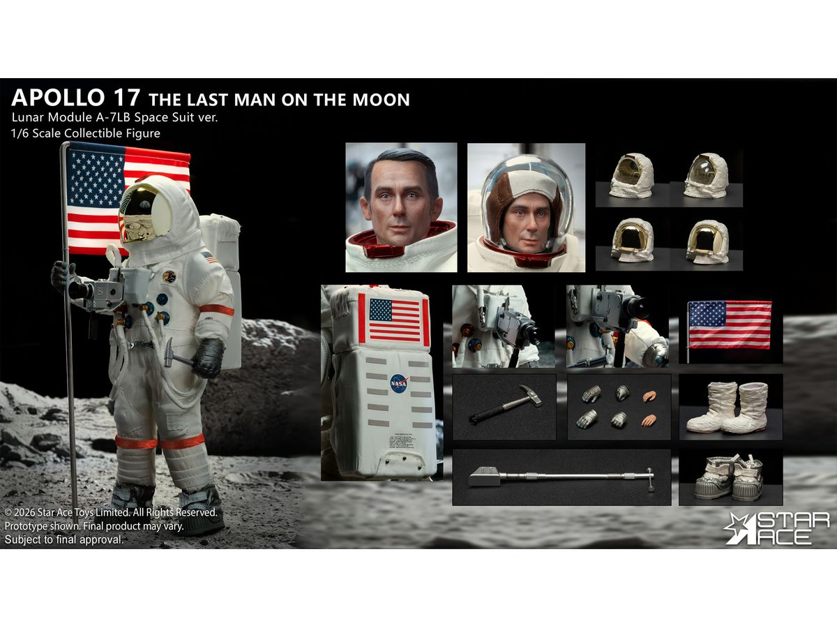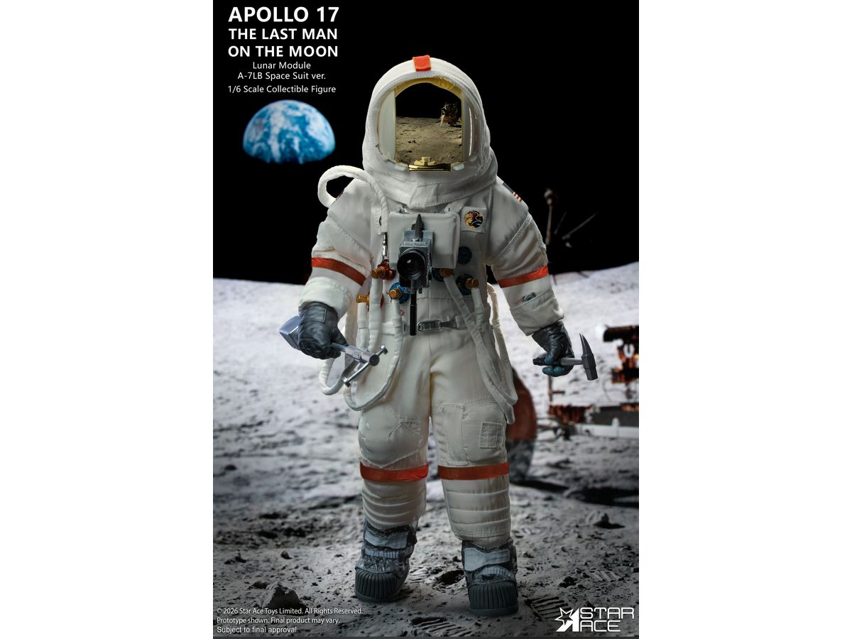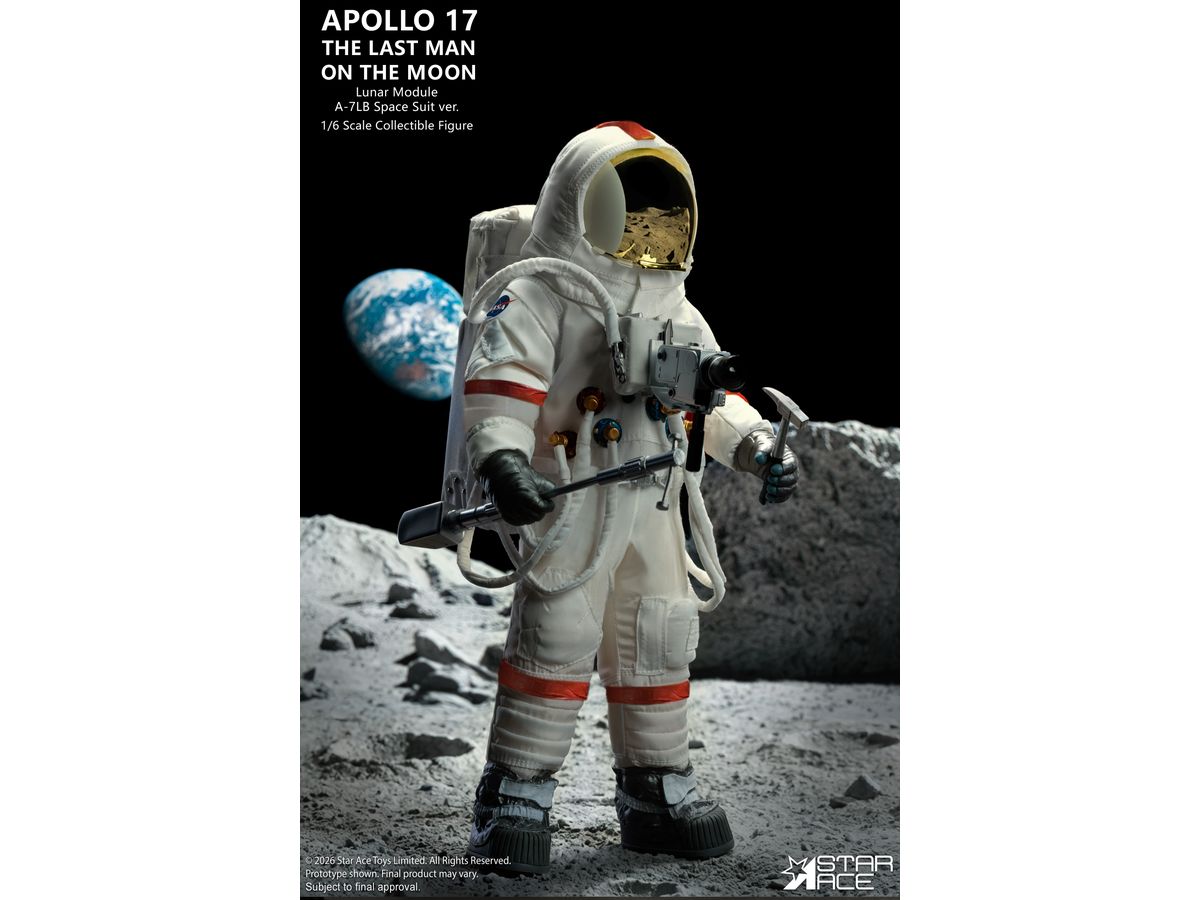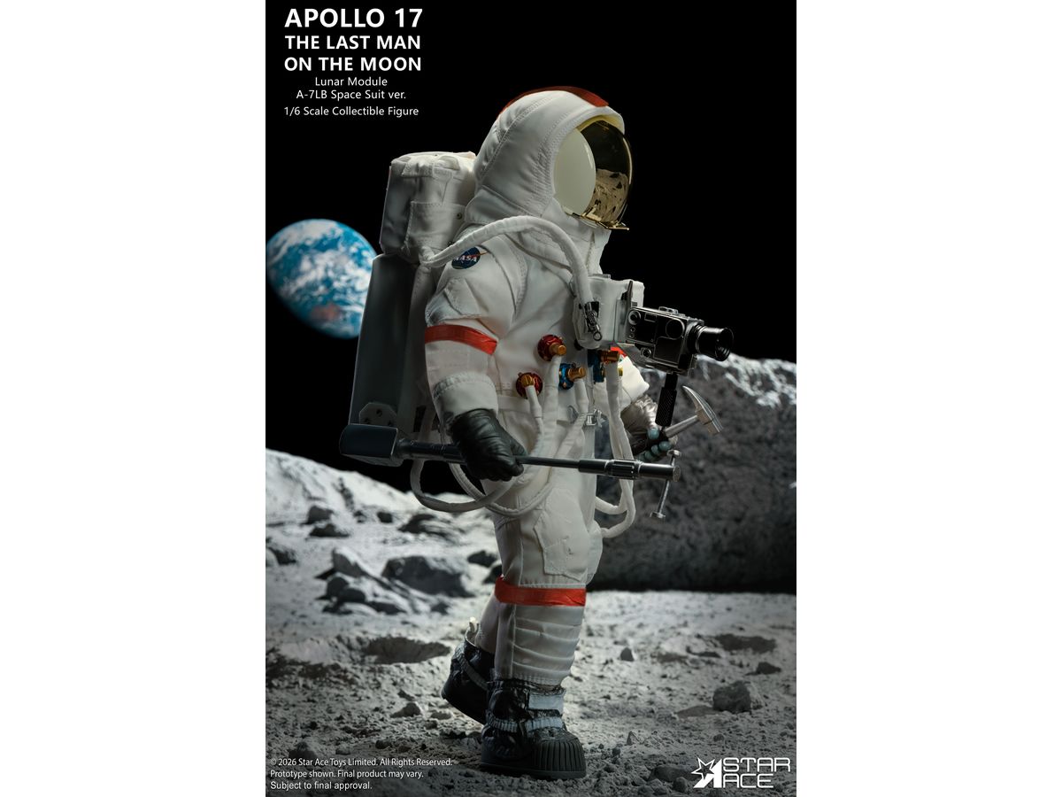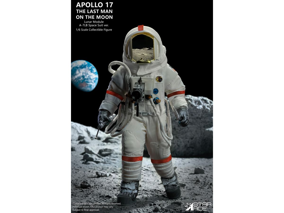 象徴的なA-7LB宇宙服を着たサーナン船長の姿を忠実に再現、人類最後の月面探査で実際に着用された宇宙服を忠実に再現するため、ステッチや縫い目はすべて精巧に再現されています。