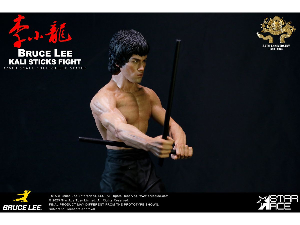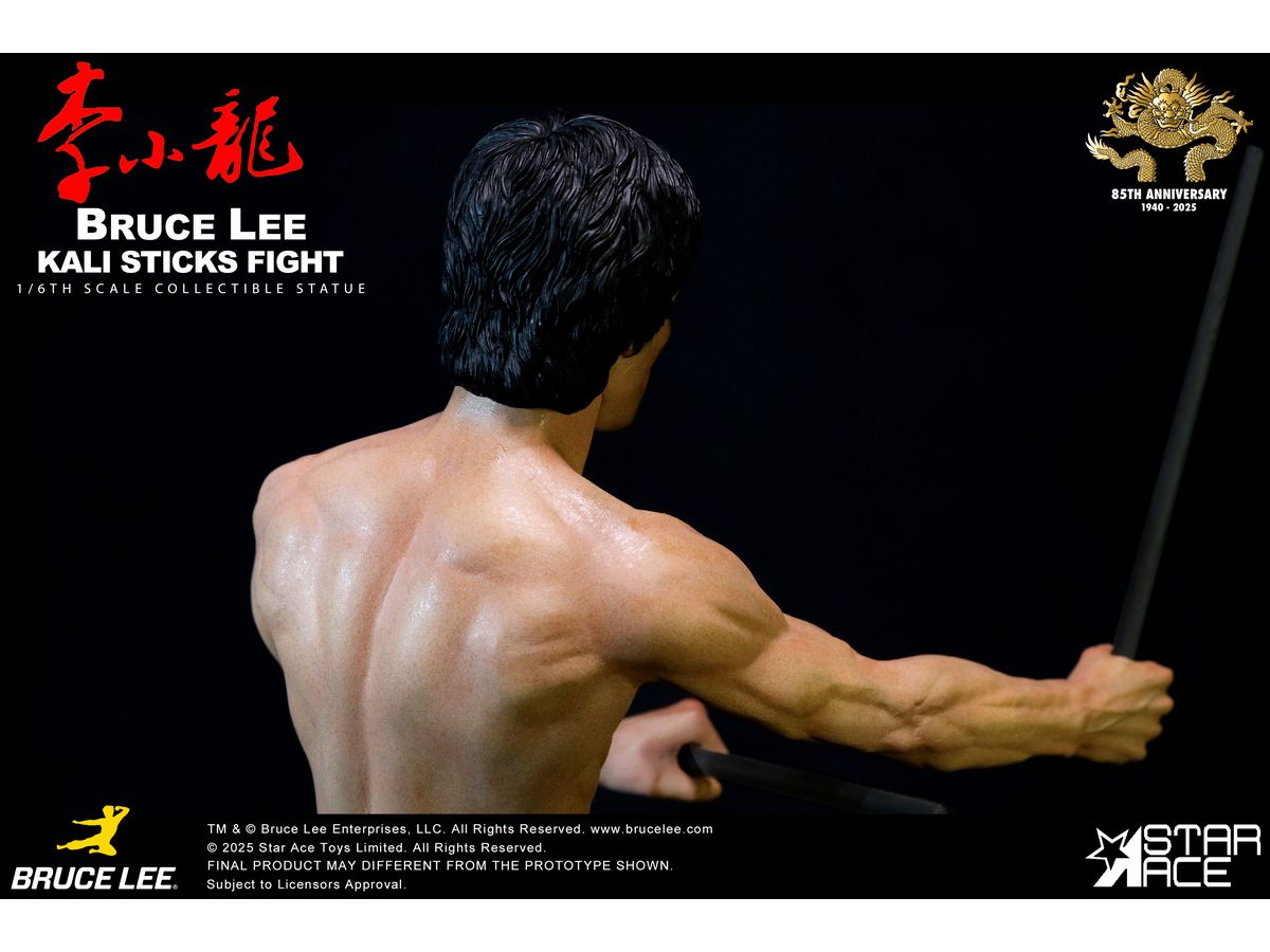 世界中にカンフーブームの熱狂を巻き起こした『燃えよドラゴン』(1973年 公開)、地下牢のシーンで次々襲い掛かる衛兵から武器を奪っては応戦を繰り返したあの名シーンを、約30㎝のポリストーンスタチューで再現しました。