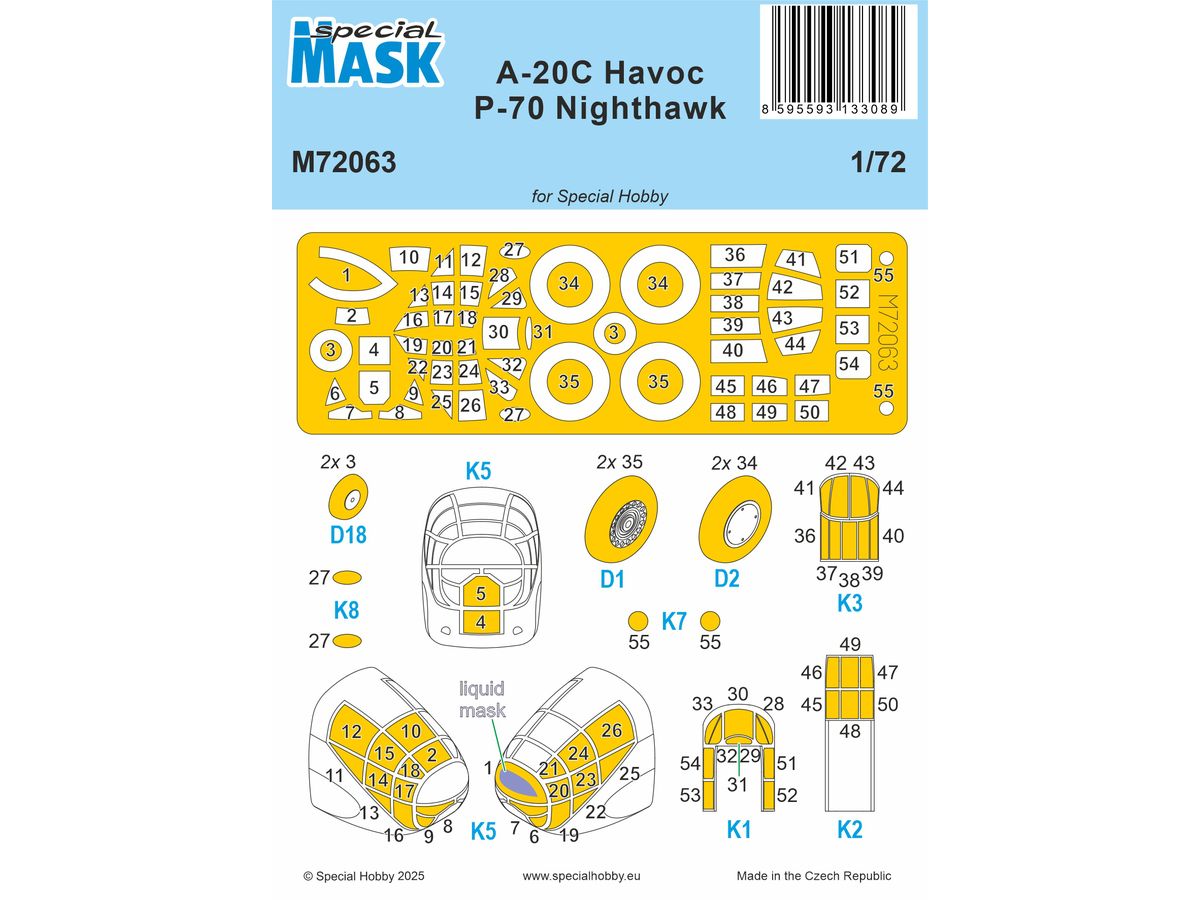 1/72 A-20C/ボストン Mk.III A/P-70 塗装マスクシール (スペシャルホビー用)