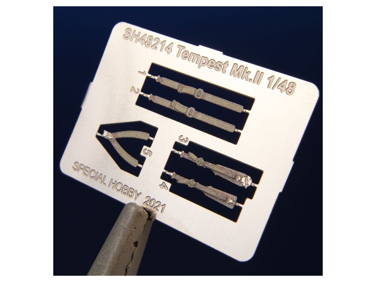 スペシャルホビーとエデュアルドが共同で開発したこのキットは、新たに設計されたMk.Ⅱの主翼と胴体パーツ等にエデュアルドで発売中のテンペスト Mk.Ⅴのコックピットや着陸装置、武装パーツなどが組み合わされています。