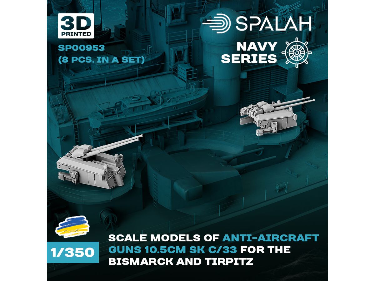 1/350 ドイツ戦艦 ビスマルク・ティルピッツ 10.5cm SK C/33対空砲 (8個入)