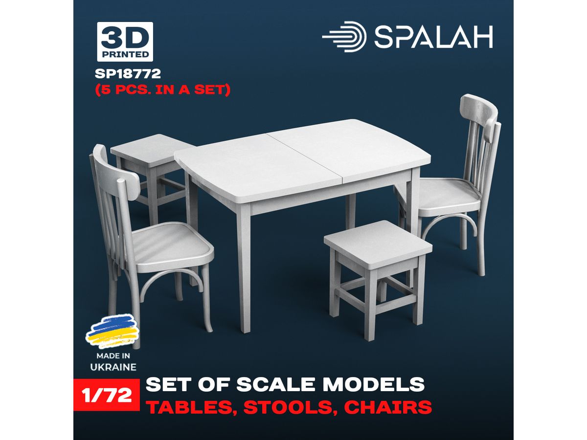 1/72 テーブル (x 1)w/スツールと椅子 (x 各2)