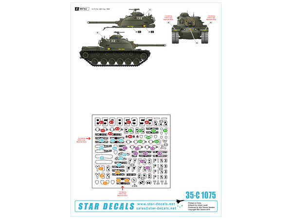 海兵隊第1,3,5大隊に配属された、M48の火炎放射器型から5種をセレクトした、貴重なデカールセットです。