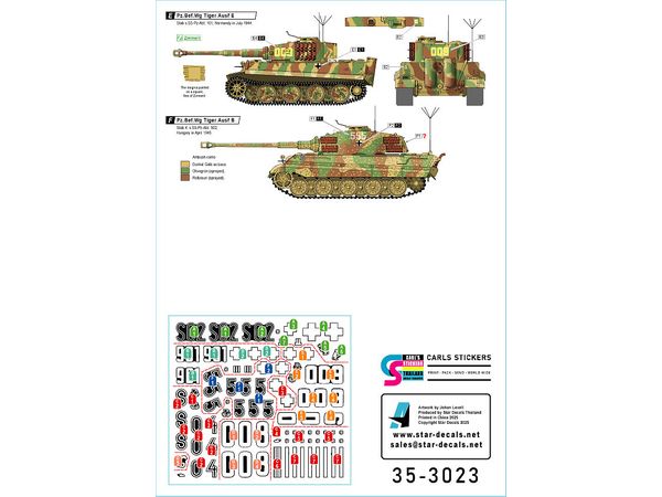 指揮戦車デカールの第7弾はドイツ武装親衛隊所属のタイガーIおよびタイガーII(キングタイガー)指揮戦車で、数々の有名車両を集めた豪華な内容です。