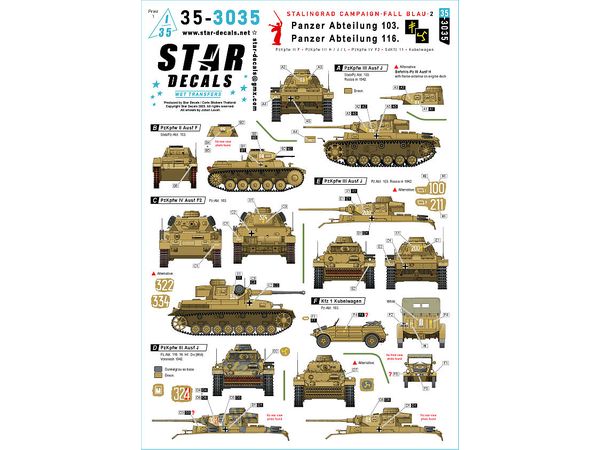 1/35 WWII ドイツ スターリングラード戦線 ブラウ作戦#2 第103戦車大隊/第116戦車大隊のII号戦車F型/III号戦車H/J/L型/IV号戦車F2型/Sd.Kfz.11/キューベルワーゲン