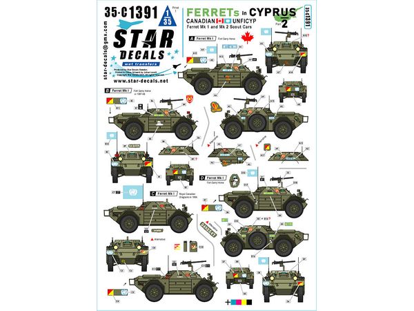 第2弾はカナダ軍UNFICYP(キプロス国連軍平和維持軍)のフェレットMk.1およびMk.2で全6種類をセット、一部のマーキングはオプションも用意します。