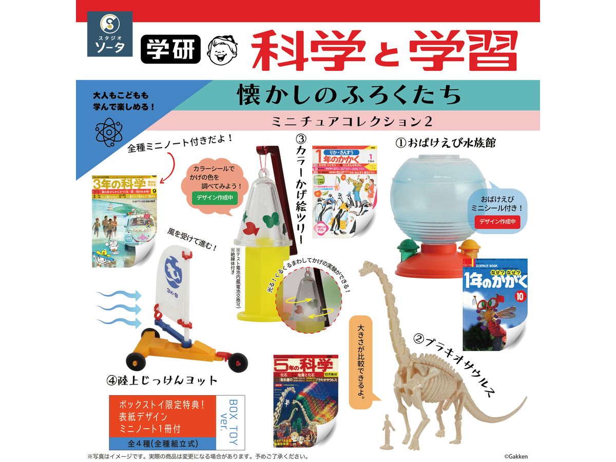 ボックストイのみ全種に雑誌表紙を使用したミニノートが付属します!