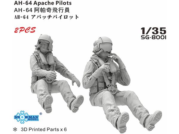 1/35 米AH64アパッチ攻撃ヘリ用パイロット2体・3Dプリンター