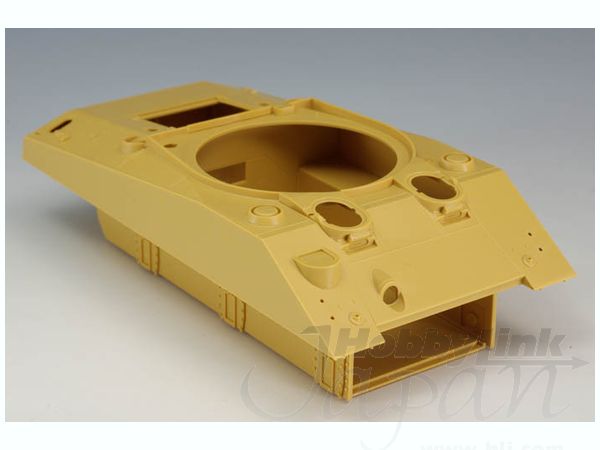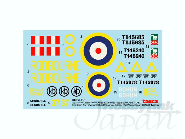 シャーマンシリーズ全制覇を目指すタスカから、溶接式車体をもつシャーマンIII(M4A2)の登場です。第一弾は操縦手/車体銃手席の装甲フード正面に装甲バイザー付きの直視式(DV)スロットをもつ初期型です。ディテールは同社のこれまでのシャーマンキットで知られた通りの精密さにあふれており、M4A2用の新規パーツが起こされているので構造の違いがわかります。足回りはこのキットでは初期型サスペンション付きとなっています。今回、タスカはシャーマンのデビューを飾った北アフリカからシシリー戦の英軍にとくに焦点を当てたそうで、その考えに応じたマーキングの選択がなされています。