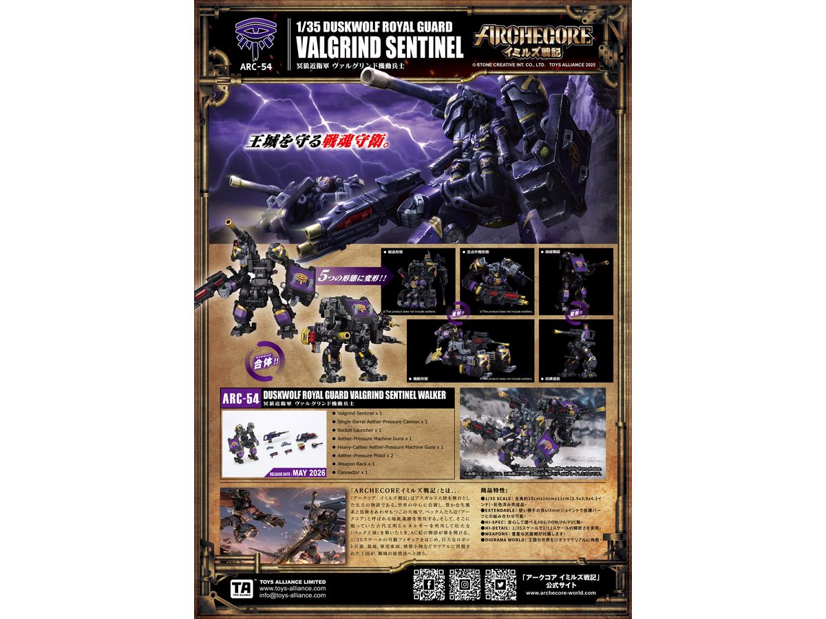 TOYS ALLIANCE LIMITED製作の下、大人気な1/35スケールオリジナルSF可動玩具シリーズ 「ARCHECOREイミルズ戦記」より、「ARC-54 冥狼近衛軍 ヴァルグリンド機動兵士」が登場!