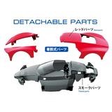 低く鋭いフォルムのボディはハヤブサやワシなどの猛禽類をイメージし、実車のハイエンドスポーツカーのモノコック構造を思わせるスモークカラーのセンターパーツに、レッドのボディパネルを取り付ける構成。