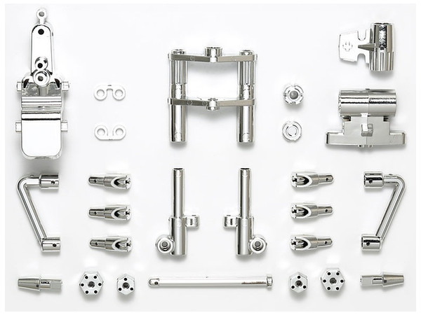メッキ加工されたT3-01シャーシ用フロントフォーク