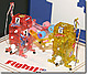 すばやいパンチを出しながら動き回る、組み立て式のボクサーロボットを2体セットして、対戦ゲームが楽しめます。ロボットははめ込み、ビス止めだけで完成、モーターはリモコン基板に配線ずみですから手軽に組み立てられます。また、クリヤーボディですから、モーターの回転を足となるグリップ部品に伝えてその動きをリンクロッドで腕に伝えるメカニズム、攻撃ポイントにパンチが当たるとジャッジプレートが倒れるしくみも楽しく観察できます。