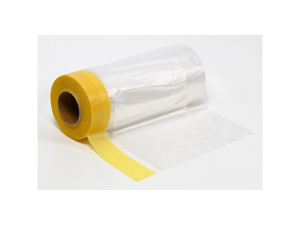 ★マスキングテープの一端に半透明のフィルムシートを接着。テープを貼り付けた後、折りたたまれたシートを広げれば、手軽に広い面積のマスキングが可能です。★全体幅は550mm、長さは10m。