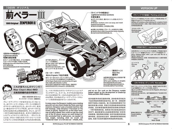 ・組立説明図には前ちゃん本人による1989年当時のオリジナルマシン・前ペラーⅢの解説つき。