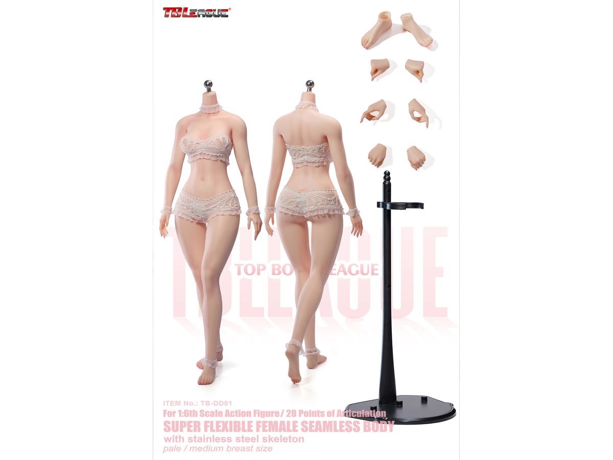 1/6 TBリーグ スーパーフレキシブル 女性シームレスボディ スリムウエスト・カーヴィー ヘッドなし/ 足首取り外し式/ ペールスキン