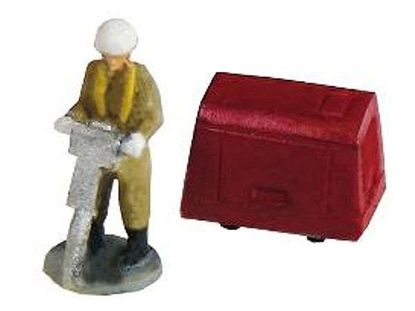 製品は電動ハンマーではつり作業中の作業員と電源車を模型化