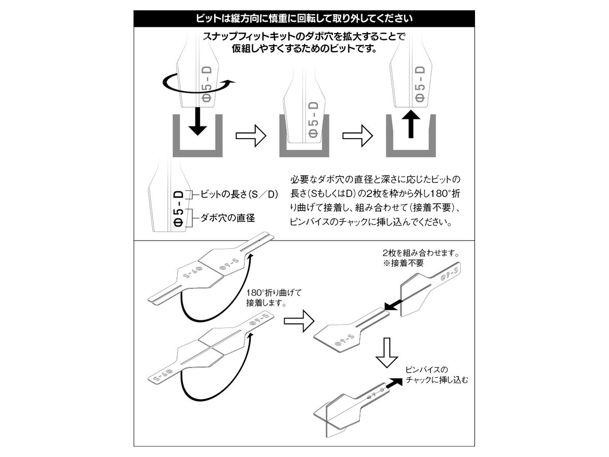 スナップフィットキットのダボ孔の内径を拡げて仮組しやすくするためのピンバイス用ビットです。